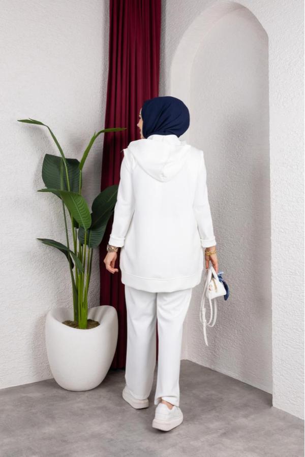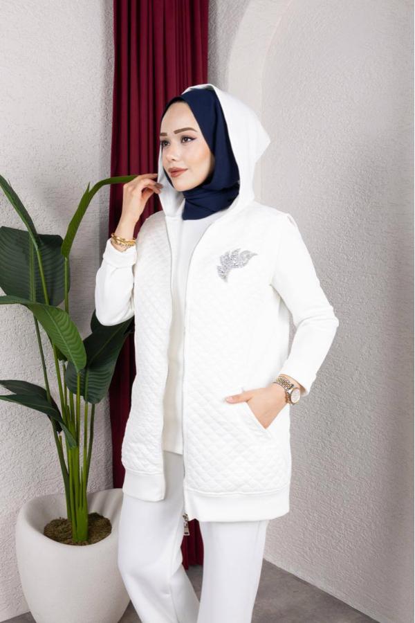 3’LÜ KAPİTONE TAŞLI YELEK BEYAZ TAKIM