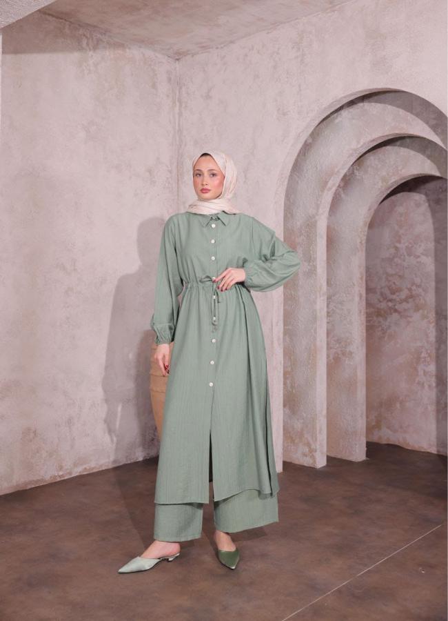 Çilek kumaş Uzun Tunikli Takım Mint