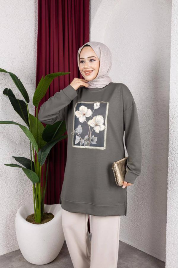 KABARTMA BASKILI OYSHO YEŞİL SWEAT