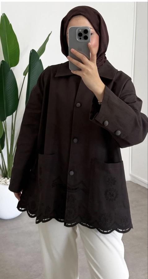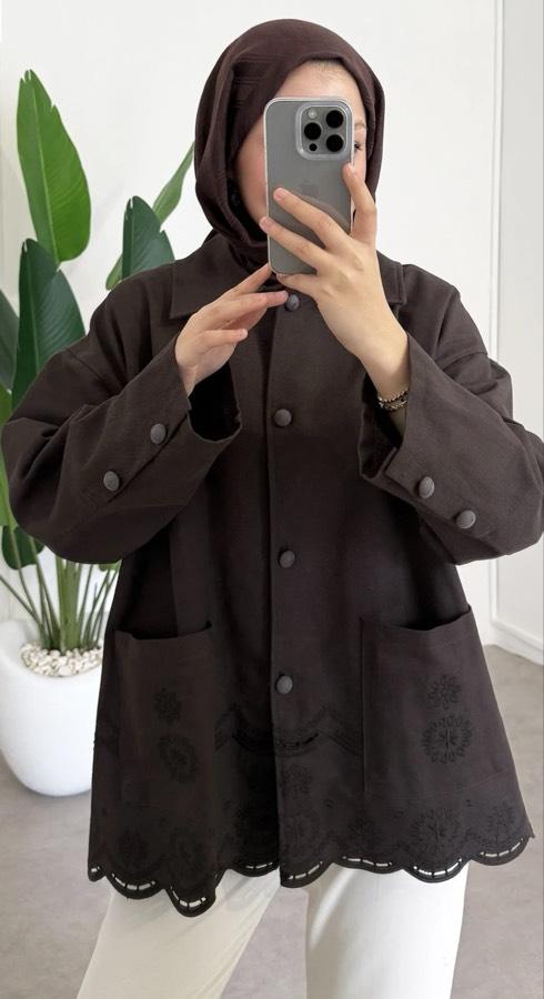 KAHVE PAMUKLU GABARDİN ÇEKET