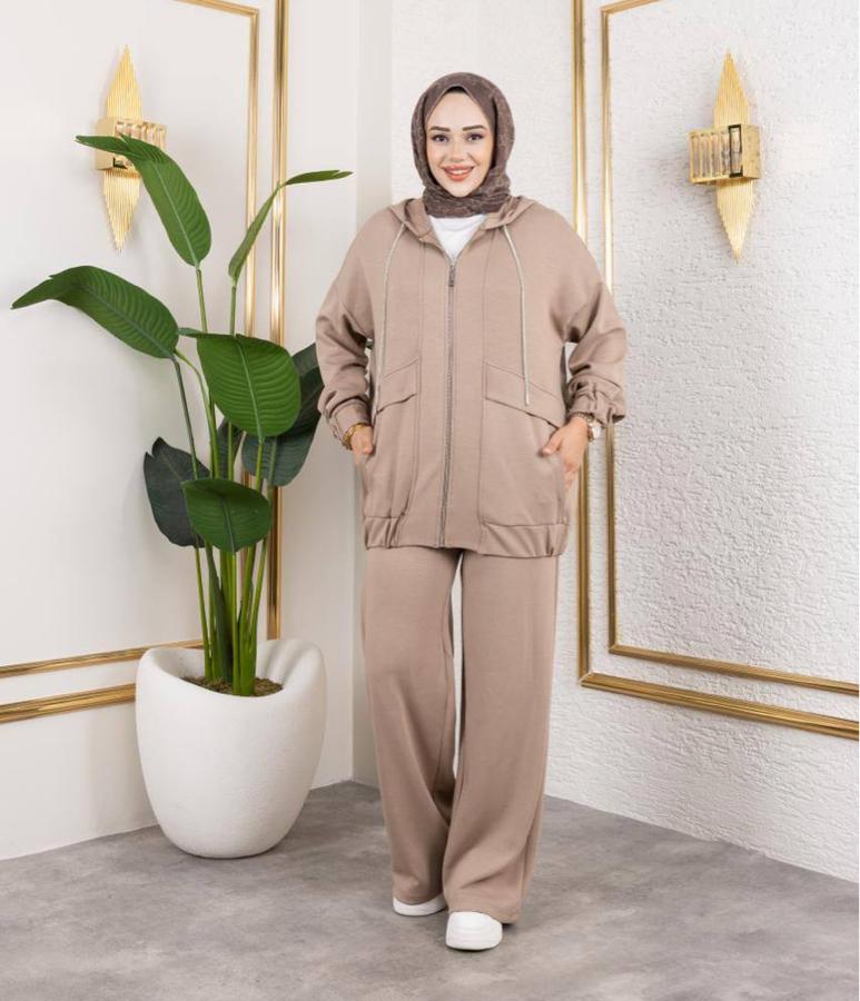 KAPŞONLU FERMUARLI CAMEL TAKIM