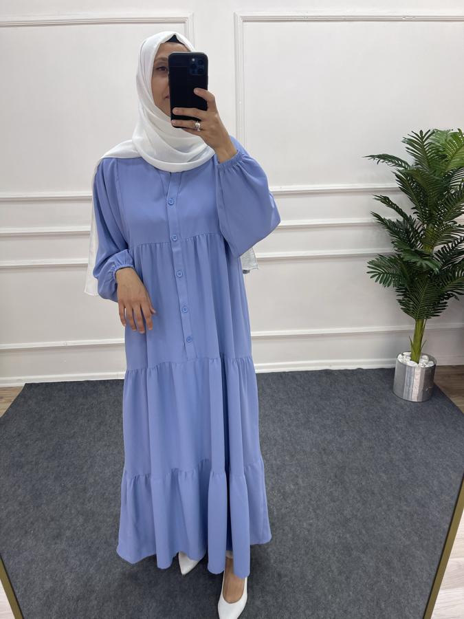 Linda Kumaş Mavi Elbise