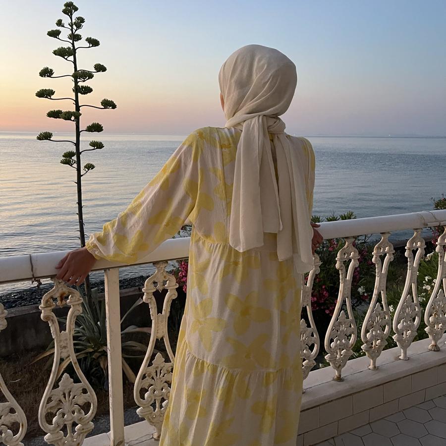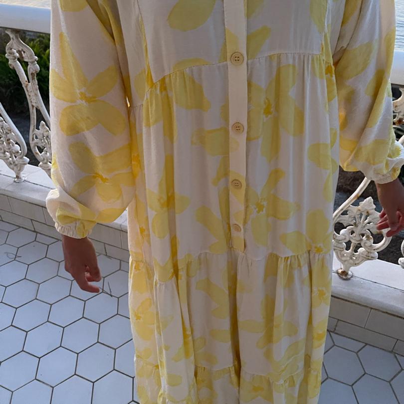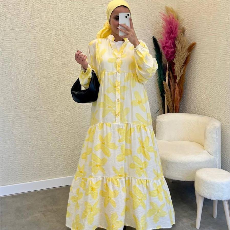 Modal Kumaş Sarı Çiçekli Elbise