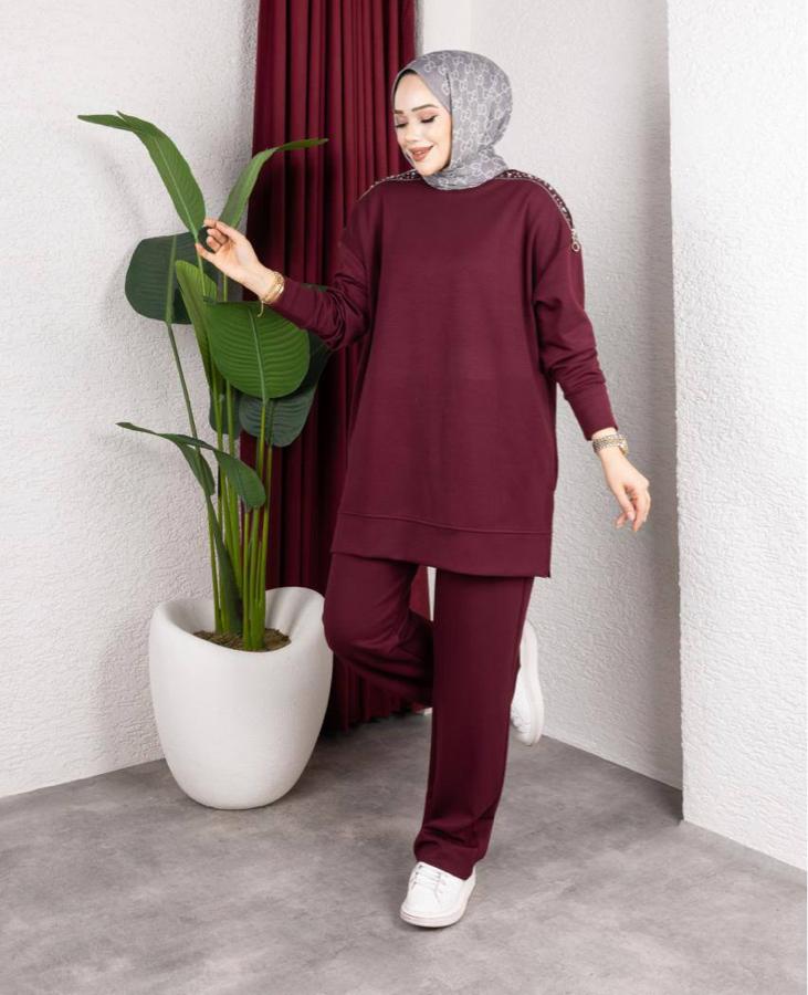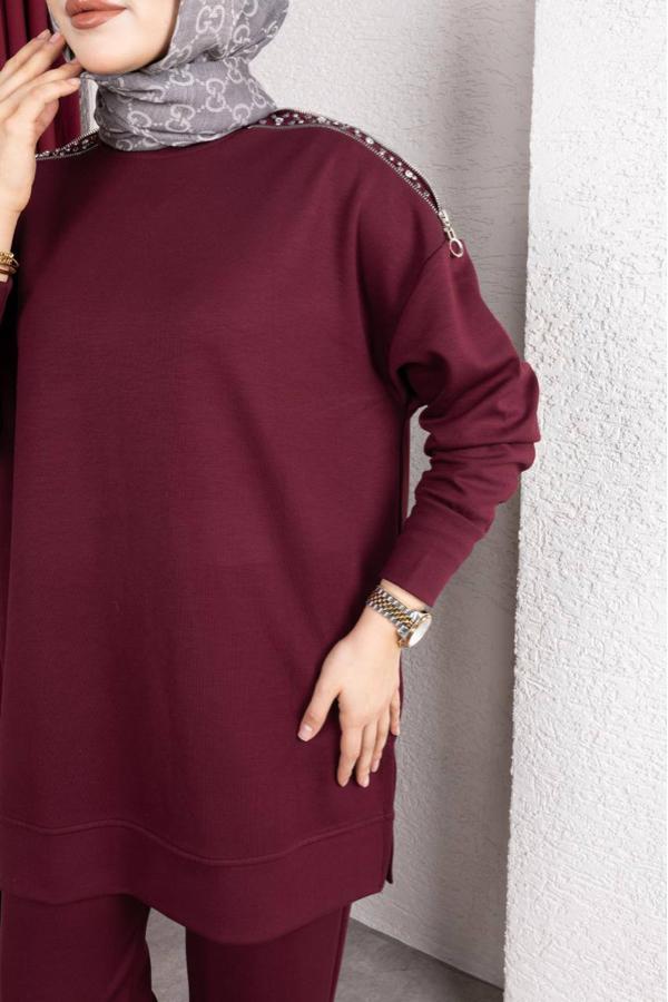 OMUZU TAŞ FERMUAR DETAYLI BORDO TAKIM
