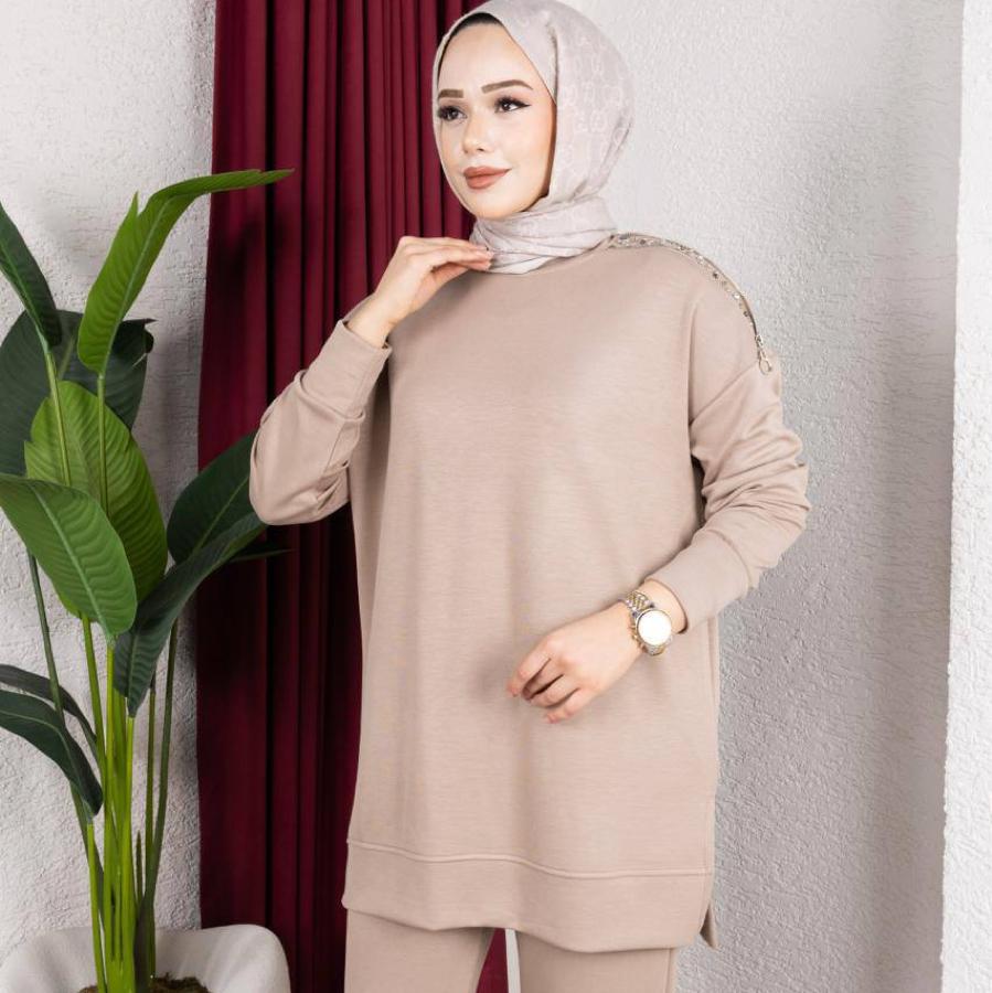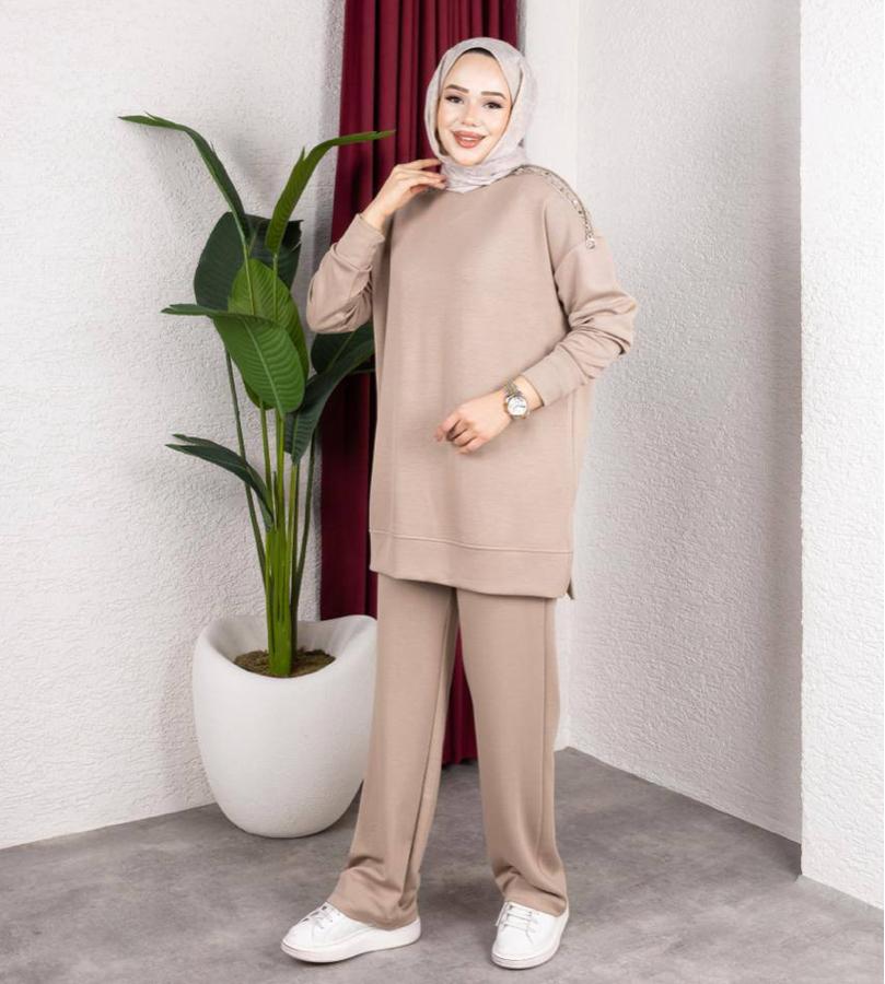 OMUZU TAŞ FERMUAR DETAYLI CAMEL TAKIM