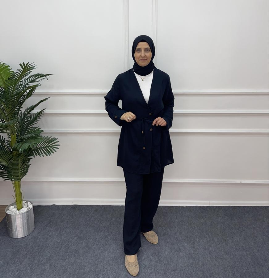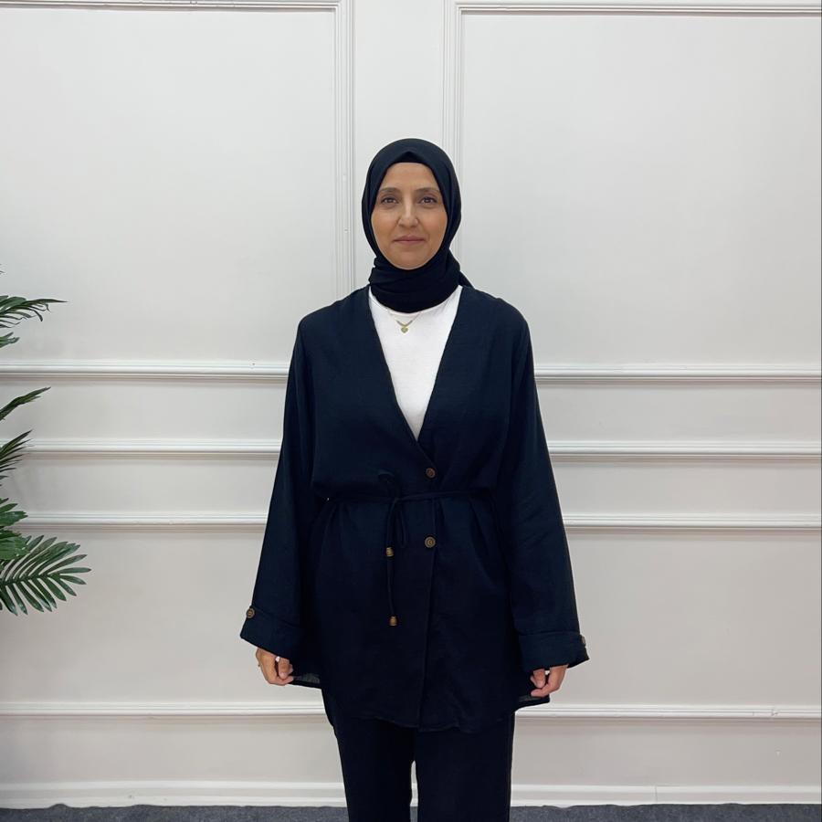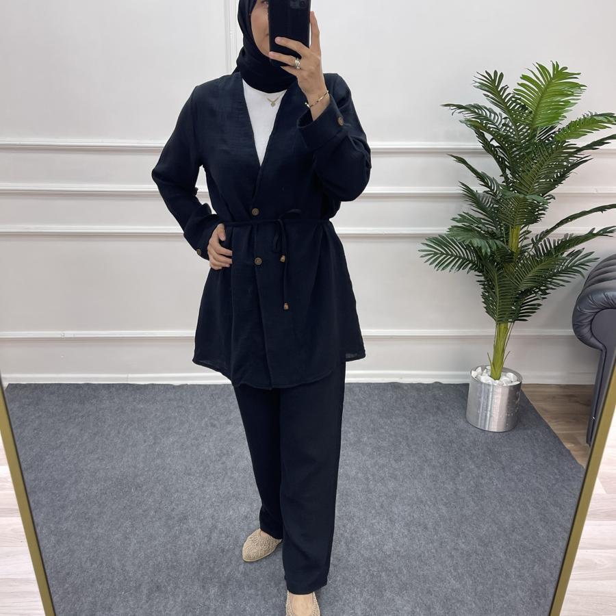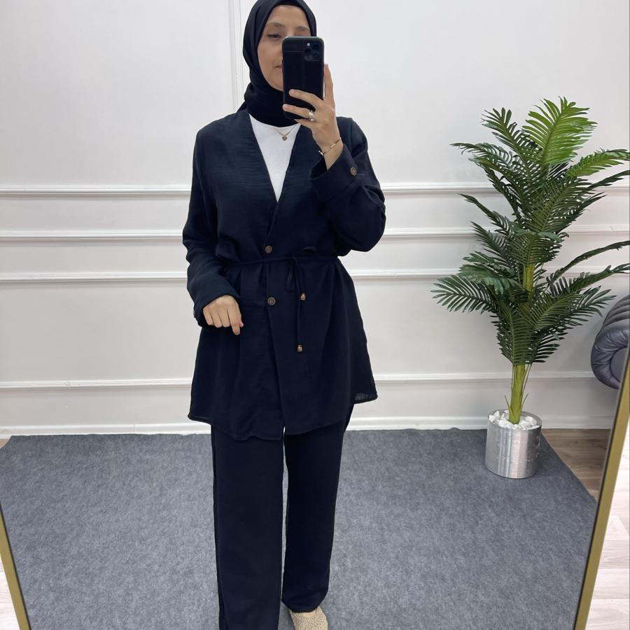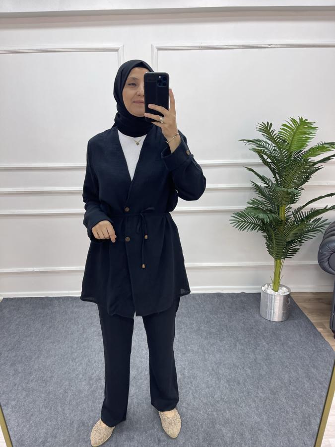 Yumuşacık dokusu, dökümlü duruşu ve zamansız stiliyle yazın favorisi olmaya aday! ✨ Müslin kumaş ✨ Düğmeli ceket – seyyar bağcıklı ✨ Lastikli pantolon – rahat kesim ✨ M - L - XL - XXL beden aralığı 🎨 4 renk seçeneği: Kahverengi , Siyah, Bej, Zeytin Yeşili