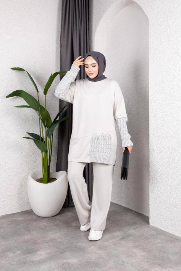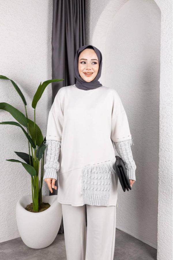 TAŞ RENGİ TÜYLÜ TRİKO OYSHO TAKIM