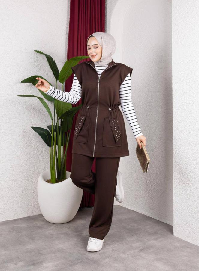 TAŞLI YELEK OYSHO KAHVERENGİ TAKIM