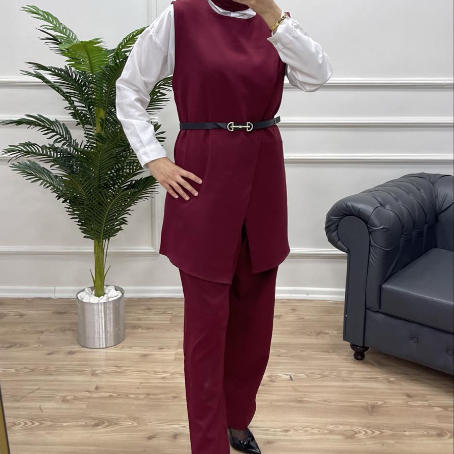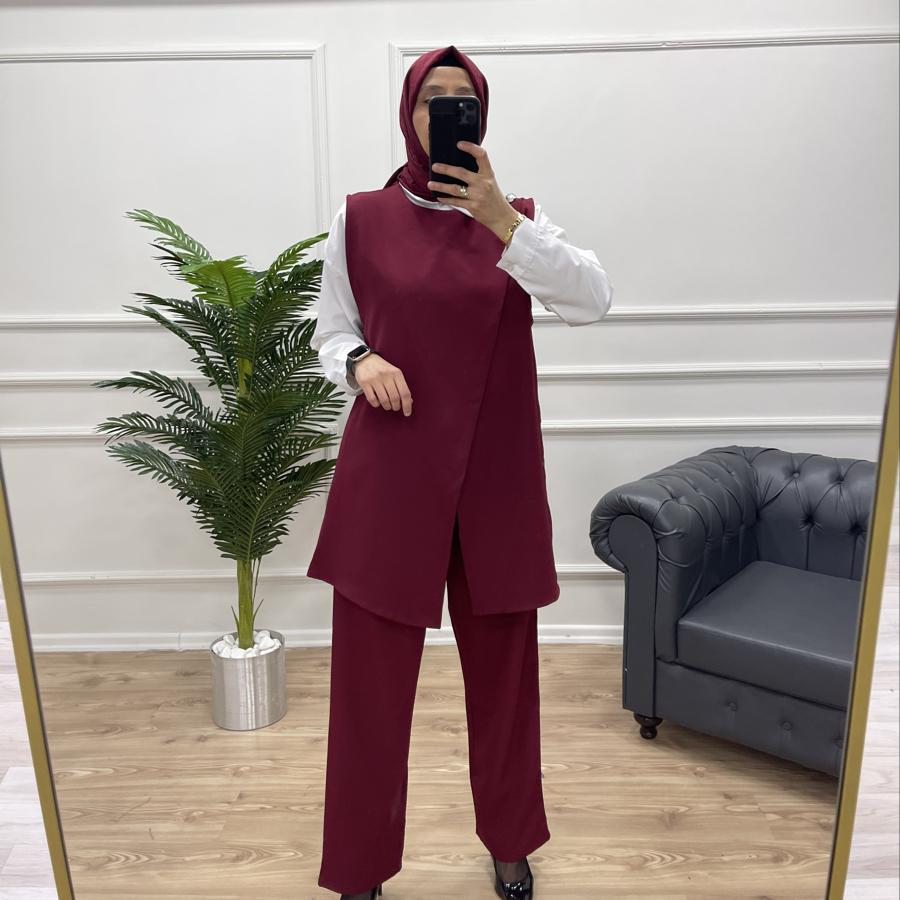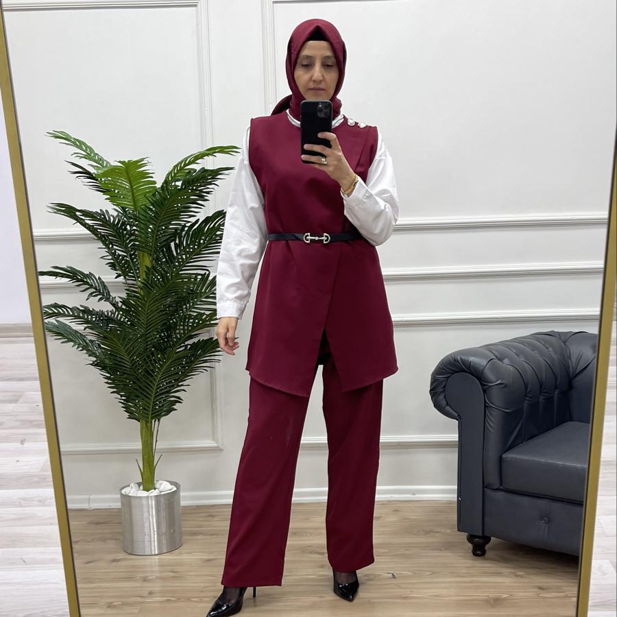 Yelek & Pantolon Double Krep Takım, zarif pastel tonları ve şık koyu renk seçenekleriyle geniş bir renk yelpazesine sahiptir. Her tarza ve zevke hitap eden renkler, farklı kombinasyonlar oluşturmanıza olanak tanır. Ayrıca, takım çeşitli beden seçenekleri ile her vücut tipine uyum sağlayacak şekilde tasarlanmıştır.